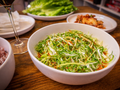 파체 샐러드는 한국식 바비큐에서 꼭 경험해 봐야 할 반찬으로, 신선하고 아삭아삭한 식감과 대담하고 고소한 맛으로 잘 알려져 있습니다. 자체 비법 소스로 가볍게 양념하고 완벽하게 균형을 이룬 이 클래식 KBBQ 사이드는 풍부한 구운 고기를 자르고 모든 한국식 바비큐 부위와 매우 잘 어울리며 모든 물기를 돋보이게 합니다.